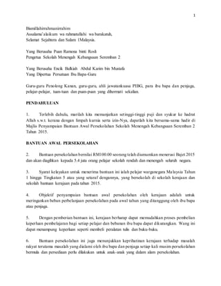 Text of garis panduan bantuan awal persekolahan kepada murid di. Jan 11 2015 114140 am. PEMBERIAN BANTUAN KHAS AWAL PERSEKOLAHAN 1MALAYSIA 2015.